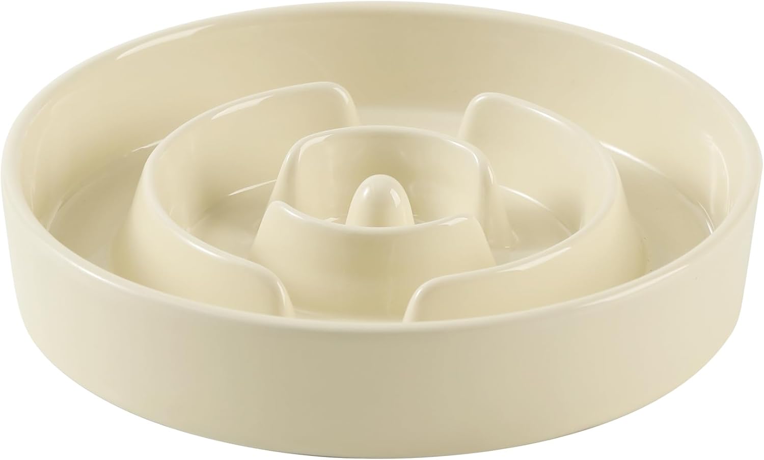 9.5inch Ceramic Slow Feeder Dog Bowl for Large Dog, Puzzle Food Dish, Anti-Gulping, Pet Slow Feeder, Stop Bloat, Preventing Choking (Single Bowl-Beige)