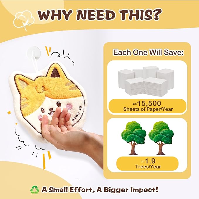 - [Reduce Paper Towel Waste]: Save up to 15,000 paper towels per person each year! Our hand towels only need washing once a week and last a long time. Made from durable coral fleece, they won’t shed or fade, making hand drying easy and enjoyable for the whole family!
