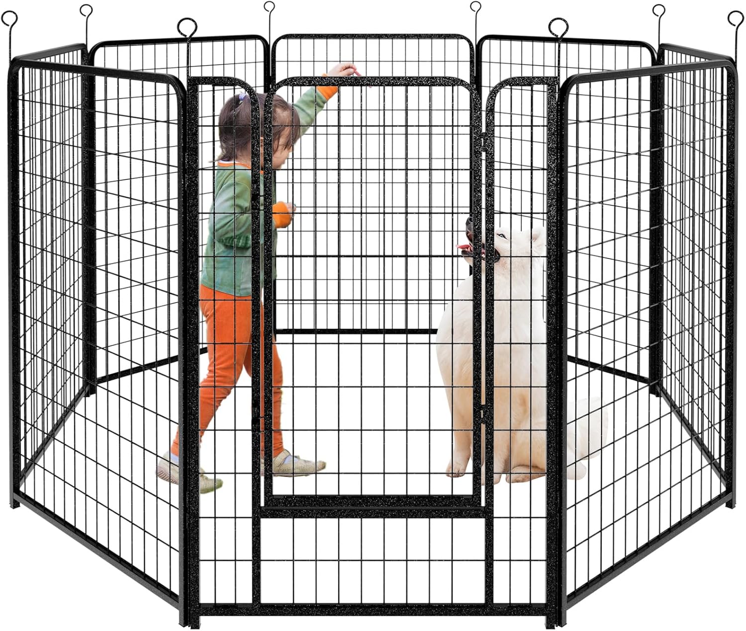 Dog Playpen Outdoor Extra Wide 8 Panels Heavy Duty Dog Fence 50" Height Anti-Rust with Doors Portable for RV Camping Yard, Total 21FT, 35 Sq.ft, Snowy Black