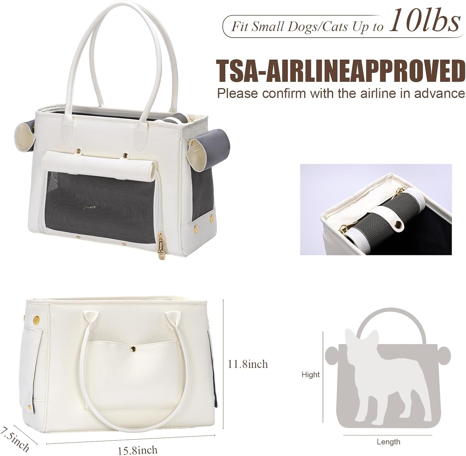 Fashion Pet Carrier Purse for Small Cat and Dog, Luxury Pu Soft-Sided Tote Bag with Large Pockets for Dogs and Puppies (White, 15.8" L x 7.5" W x 11.8" H)