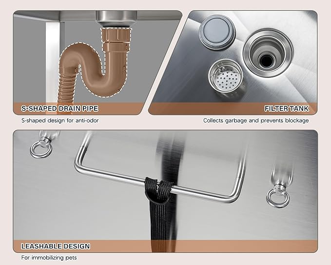 - Durable and Long-Lasting: The Dog Wash Tub is crafted from high-quality 304 stainless steel to ensure superior durability. Easy to clean for quick disposal of post-bath residue.