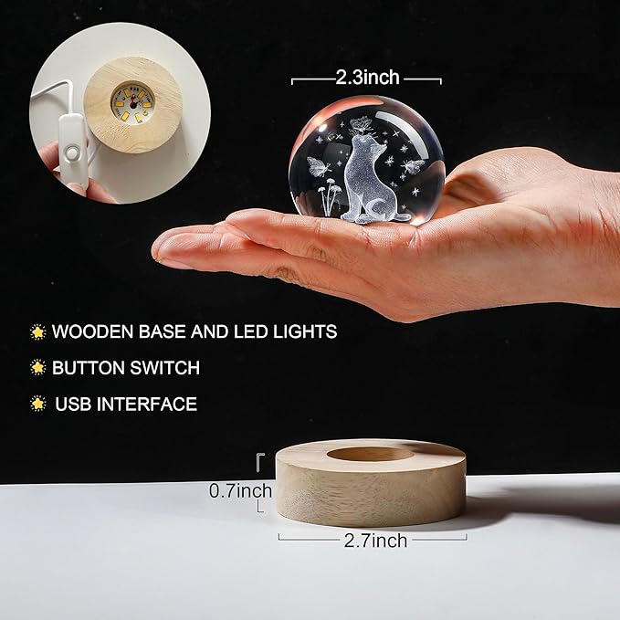 - This crystal ball, made of high transparency K9 crystal, has a diameter of 2.36 inches, making it perfect for display on a desk shelf or nightstand for a Warm ambiance.The 3D Cat is Highly Clear and Durable for a Life Use, Image will Never Lose Luster