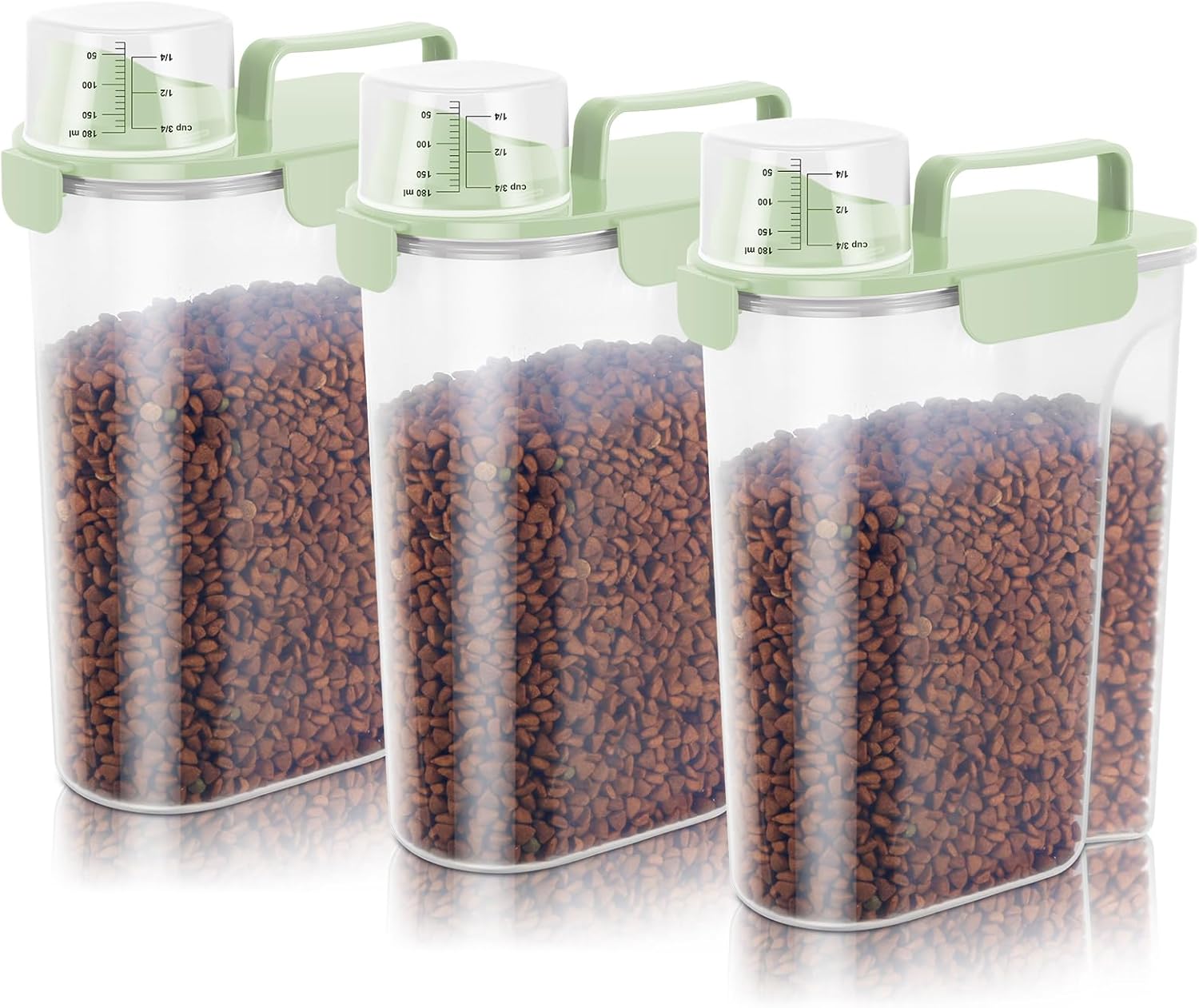 5-7Lbs Dog Cat Food Storage Container with Upgraded Large Nozzle BPA-free, 4 Snap Seals Plastic Pet Food Storage Containers with Handles (3, Light Green, 5L)