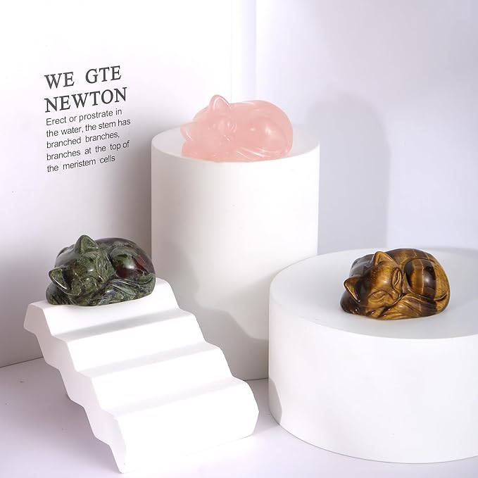 - What Will You Get: 1 Piece natural cute crystal cat rainbow fluorite statue packed in Artistone giftbox. Size (approx.) : 2*1.5*1.1". Weight : 50 g. This tiny piece of art is cute and very loved as a stocking stuffer gift!