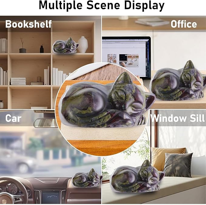 2" Sleeping Cat Statue Dragon Blood Healing Crystals Hand Carved Cute Kitten Figurine, Worry Stone for Anxiety Relif Home Desk Decor Animal Figurine