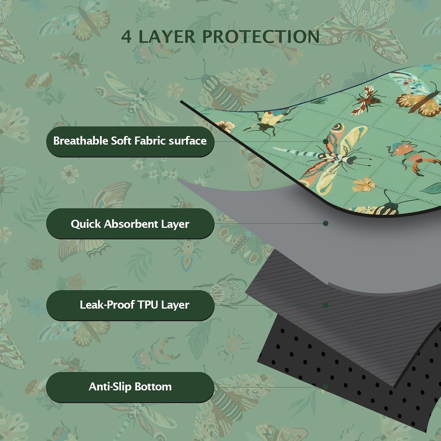 IEUUMLER Washable Pee Pads for Dogs, 2 Pack Insect Pattern Reusable Waterproof Puppy Potty Pads, Non-Slip Absorbent Pet Training Pads for Playpen Crate Bed EU014