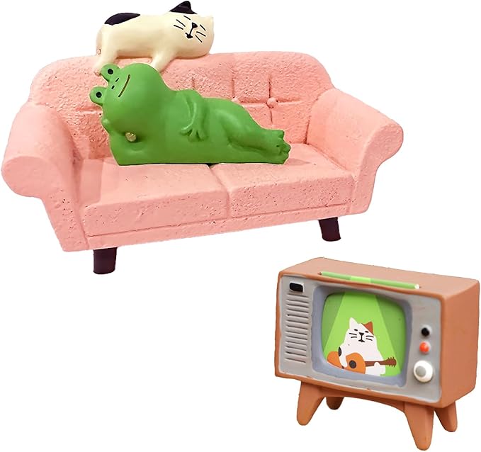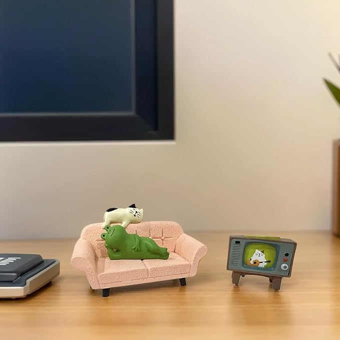 - Cute Desk Decor: Bring some personality to your workspace by placing this cute miniature figurines on your desk or bookshelf. The mini frog, sofa with the TV, create a playful, peaceful atmosphere, helping to turn any office or study area into a relaxing and inspiring space