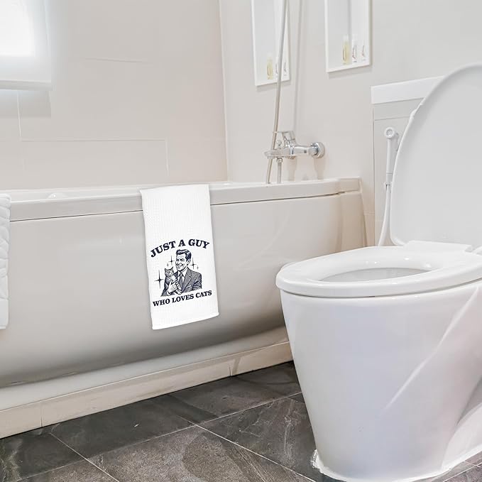 Just a Guy Who Loves Cats Kitchen Towels, Cat Lover Gifts for Men Dish Tea Towels for Kitchen Decor, Cat Dad Gifts Hand Towels for Bathroom, 16x24 Inch