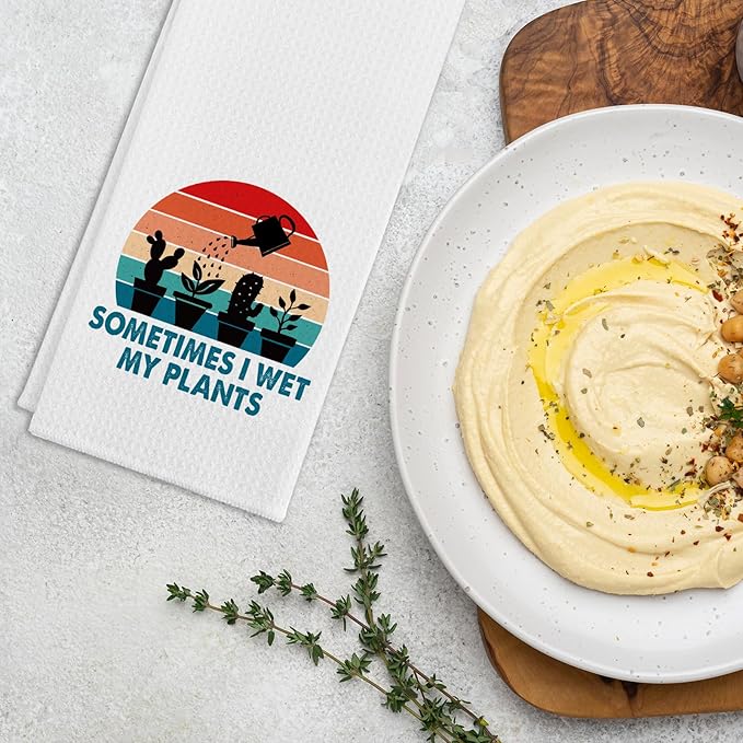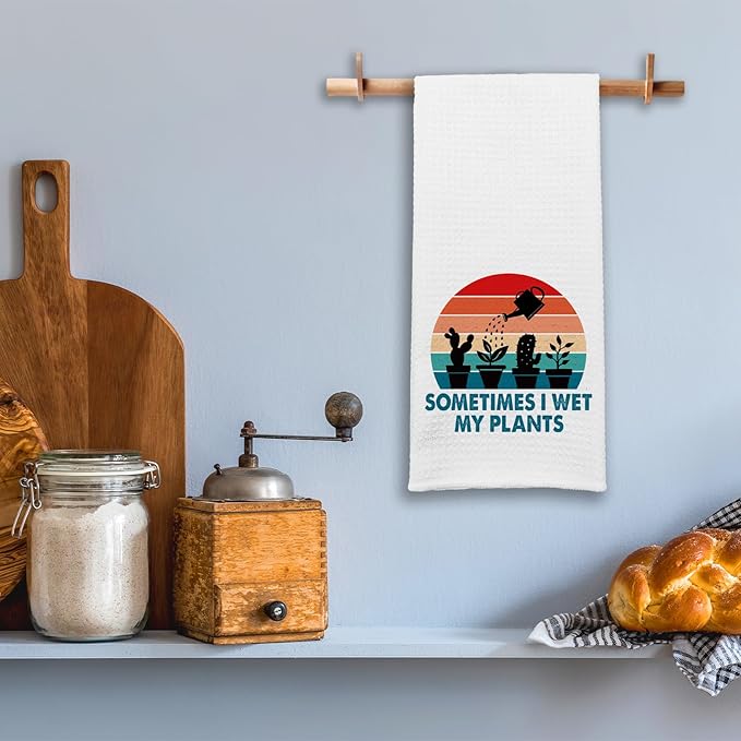 - Unique Design: Our funny kitchen towel with saying "Sometimes I Wet My Plants". The simple yet cute text patterns can bright up your kitchen and surprise your family and friends. It's a perfect kitchen gift for your favourite chef.