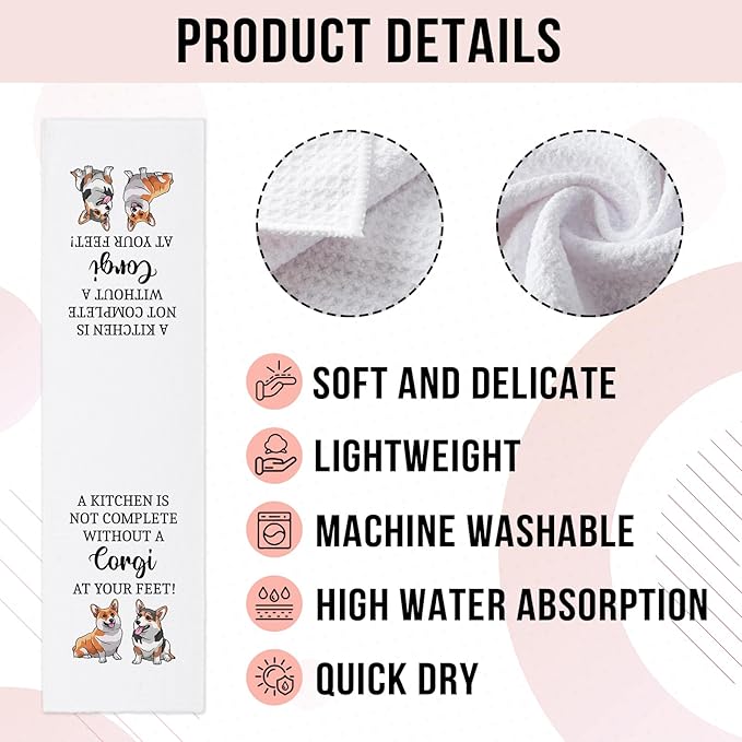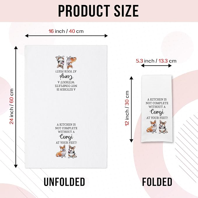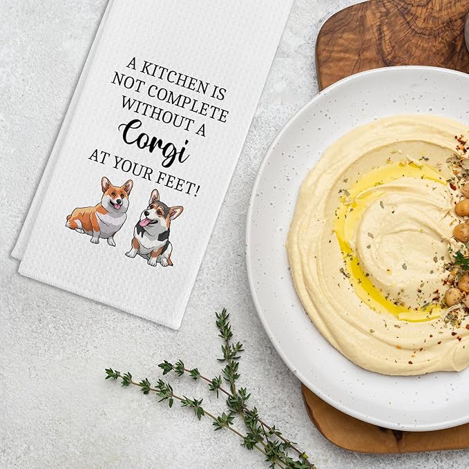 - Unique Design: Our funny kitchen towel with saying "A Kitchen is Not Complete Without A Corgi at Your Feet". The simple yet cute text patterns can bright up your kitchen and surprise your family and friends. It's a perfect kitchen gift for your favourite chef.