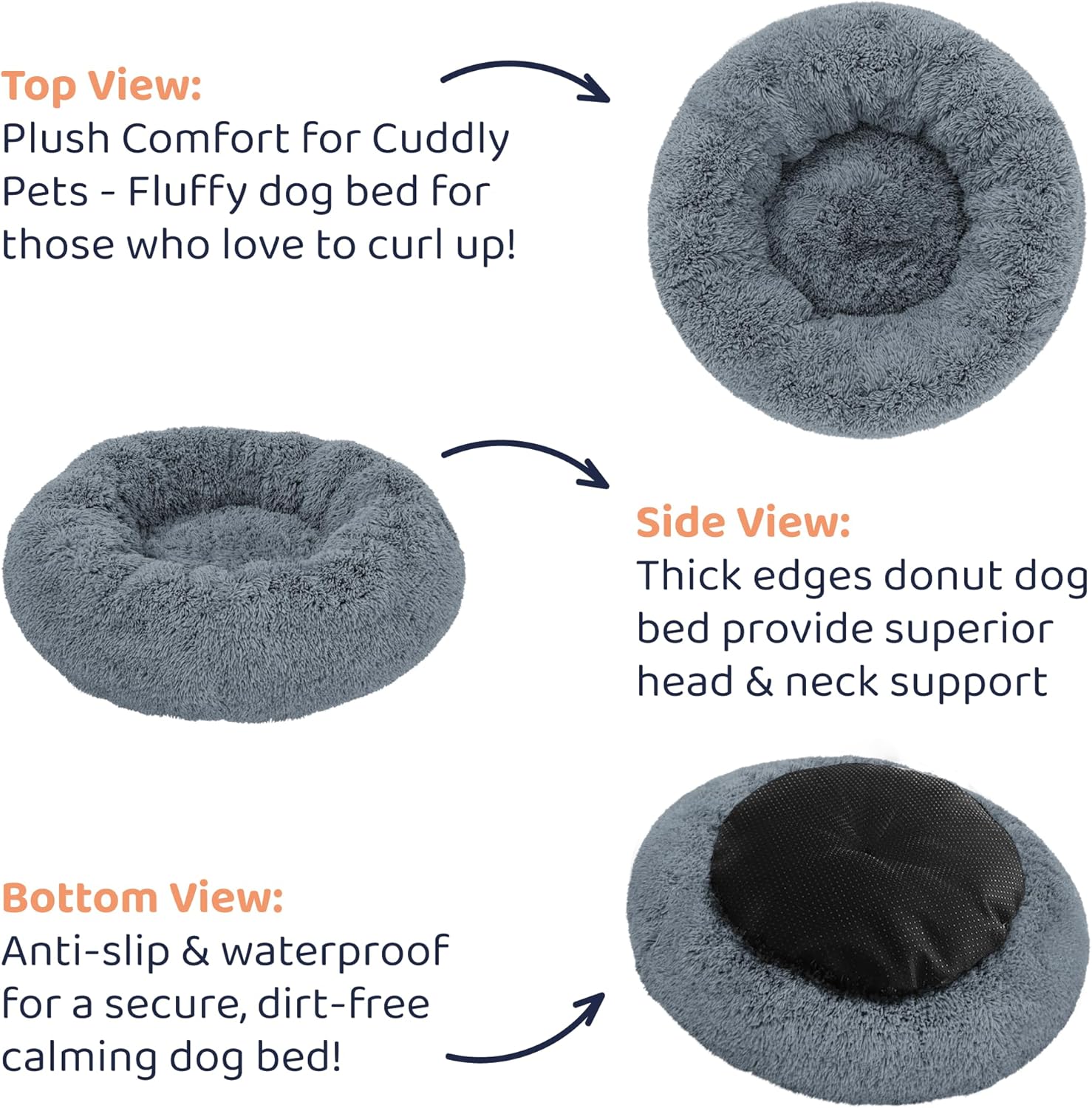 Donut Dog Bed - Premium Comfort for Anxiety Relief - Fluffy & Calming Design with Ultra-Plush Support | Cozy Round Dog Bed with Super Soft Circle Style (Size S Dark Grey)