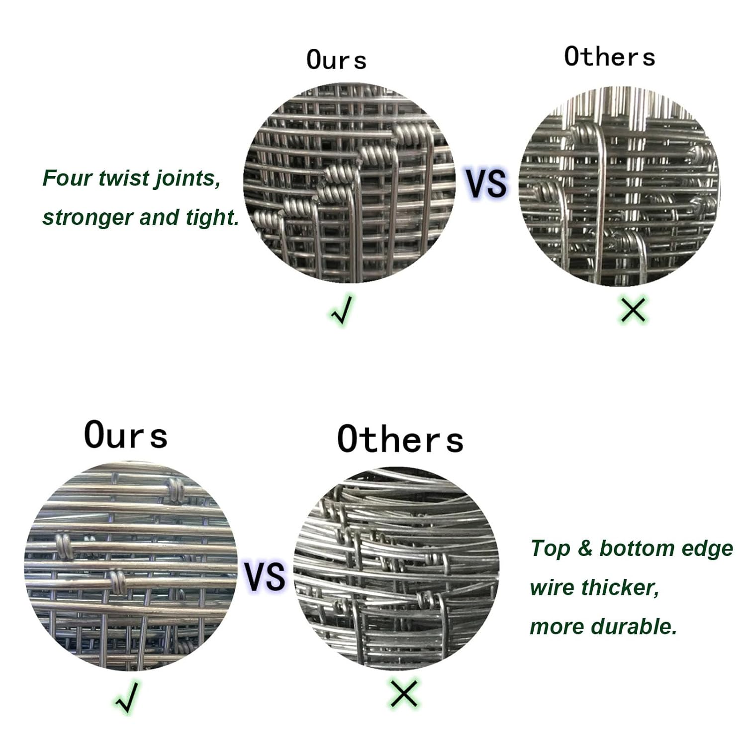 - Scientific Design -The bottom and upper have different opening mesh sizes.The Openings of fencing mesh get smaller toward the bottom to prevent rabbits, dogs, cats, chickens, foxes and other small animals to enter your farm,field or Garden.