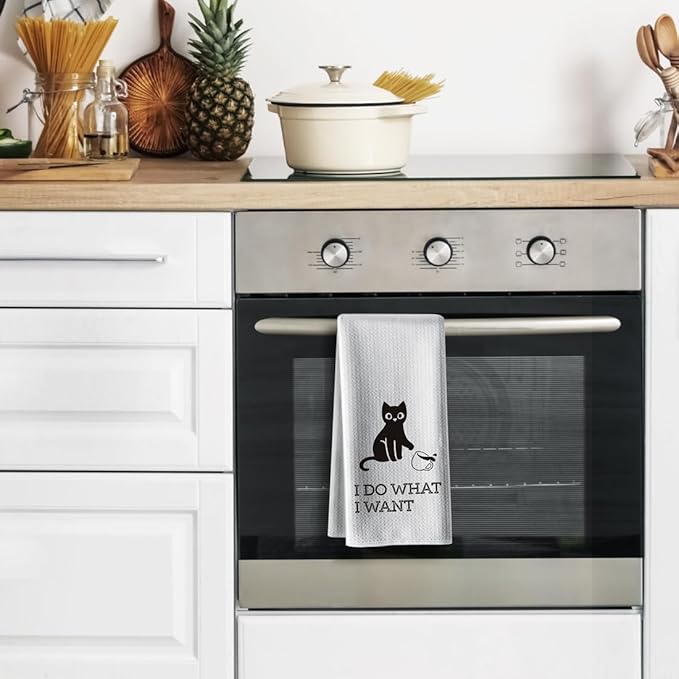 Funny Kitchen Towels,Cat Themed Dishcloth Dish Napkin Décor,16 x 24Inch,Cute Hand Towel,High Absorbent Tea Rags,Sweet Gifts for Cat Lover Owners Mom Hostess Women New Home Housewarming
