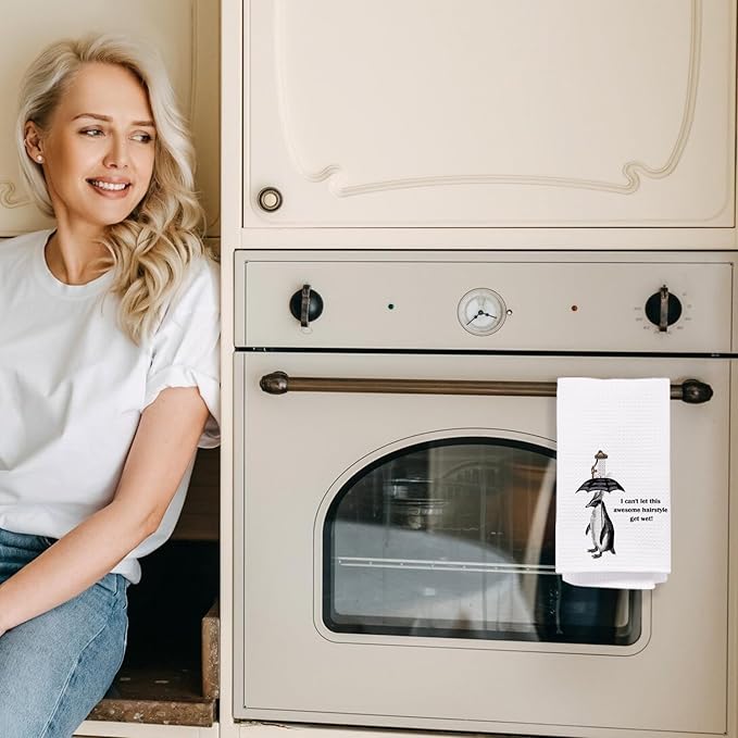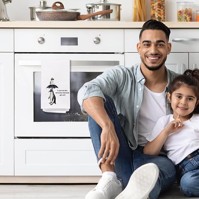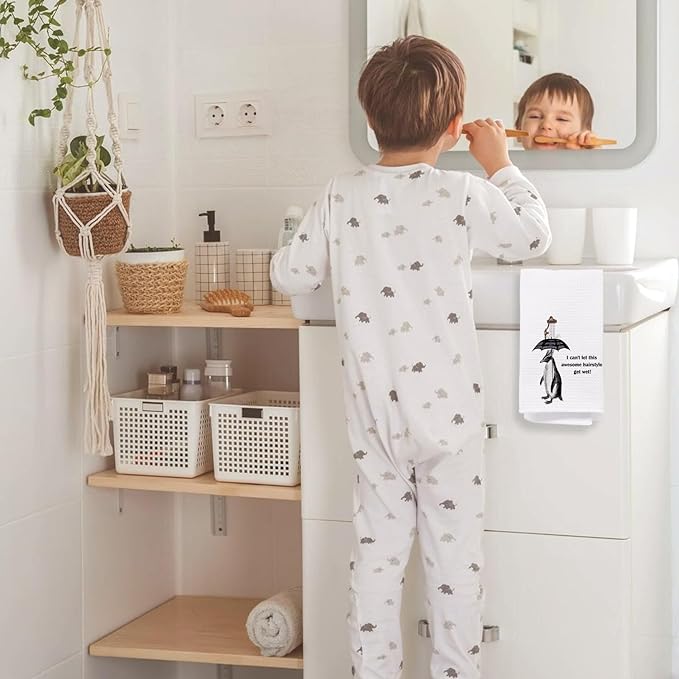 Funny Penguin Bathroom Hand Towels, Quirky Penguin Decorative Hand Towels for Bathroom Decor, I Can't Let This Awesome Hairstyle Get Wet Decorative Kitchen Dish Towels, 16x24 Inch