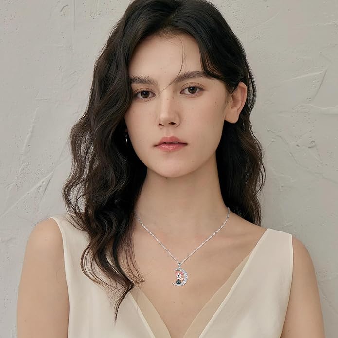 Animal Necklace 925 Sterling Silver Cat/Dog/Fox/Axolotl/Highland Cow Pendant Necklace Cute Animal Jewelry Graduation Gifts for Women