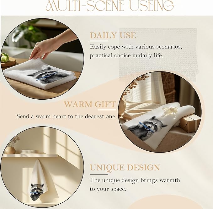 Funny Toothbrush Raccoon Bathroom Hand Towels, Raccoons Gifts Decorative Towels for Bathroom Washroom Restroom Decor, Kids Hand Towels, Gifts for Raccoon Lovers Women Men, 16x24 Inch
