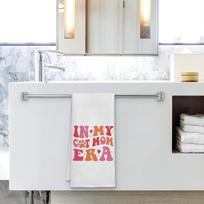 in My Cat Mom Era Kitchen Towels, for Cat Mom Hand Towels for Bathroom Decor, Kitty Kitten Pet Lover Gifts for Women Decor Dish Tea Towels for Kitchen, 16x24 Inch