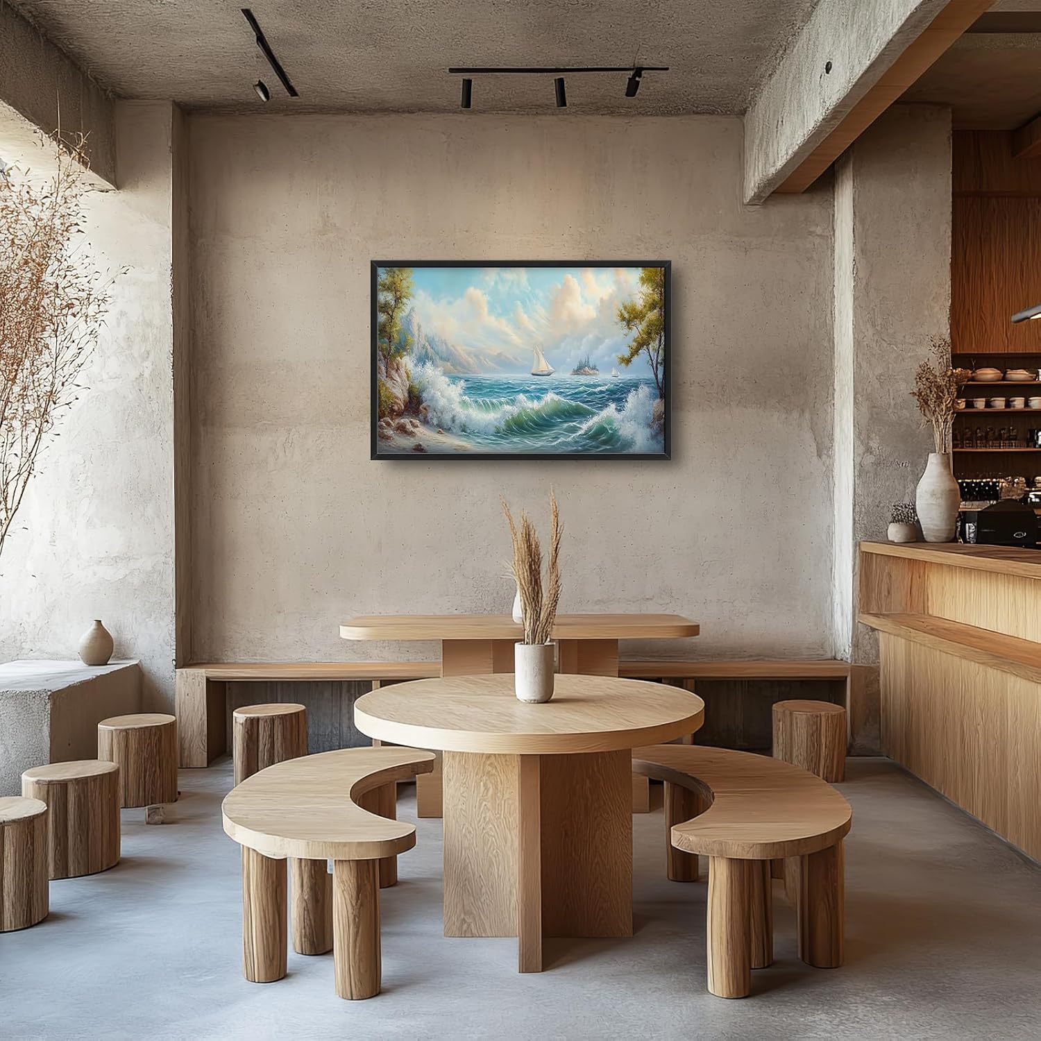 Framed Large Sailboat Wall Art for Living Room, Oversized Sea Coastal Wall Decor Beach Nautical Canvas Painting Seascape Pictures Home Decoration for Living Room Bedroom Office 36"x24"