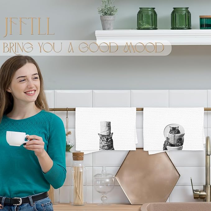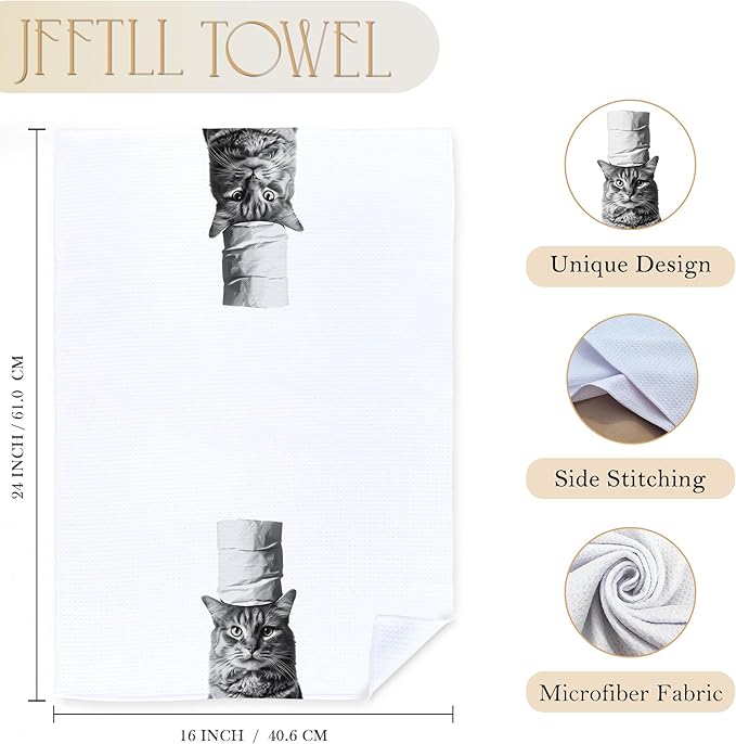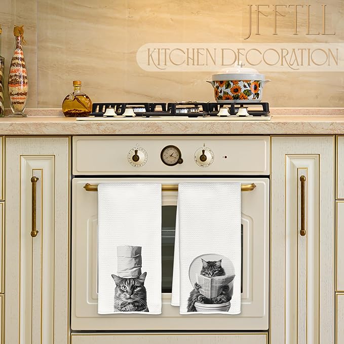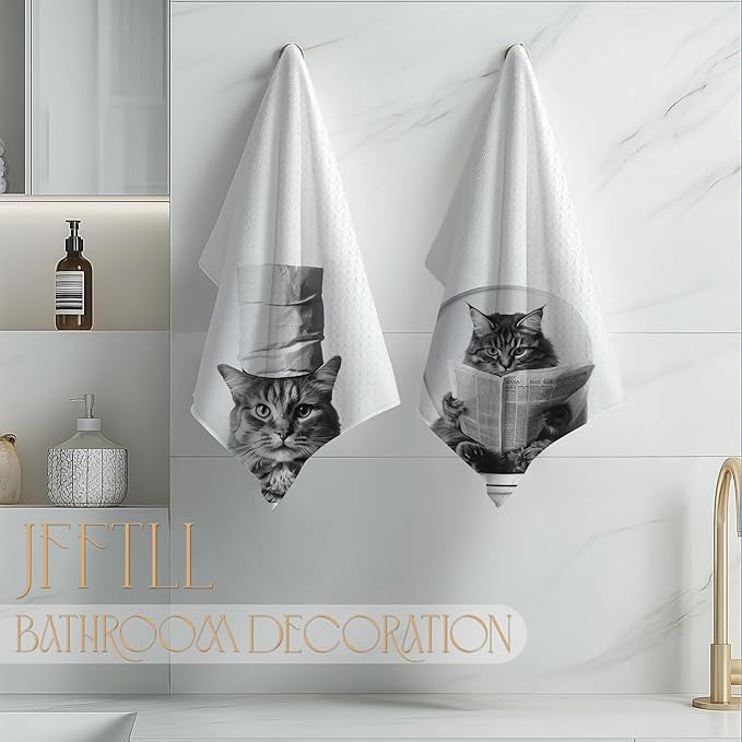 Funny Toilet Newspaper Cat Bathroom Hand Towels, Cat Mom Lady Lovers Gifts, Cute Kitty Kitten Hand Towels for for Bathroom Washroom Restroom Decor, 16x24 Inch Set of 2