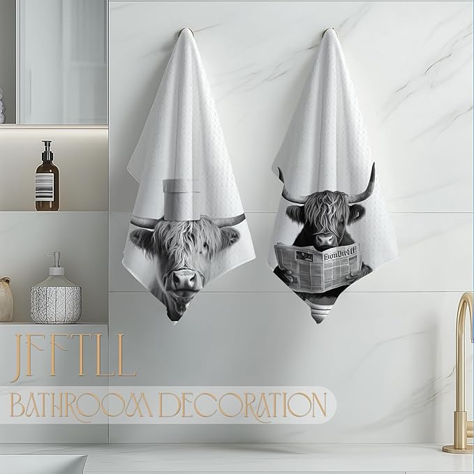 Funny Toilet Newspaper Western Cow Bathroom Hand Towels, Cow Lovers Gifts, Farmhouse Animal Hand Towels for Bathroom Washroom Restroom Decor, 16x24 Inch Set of 2