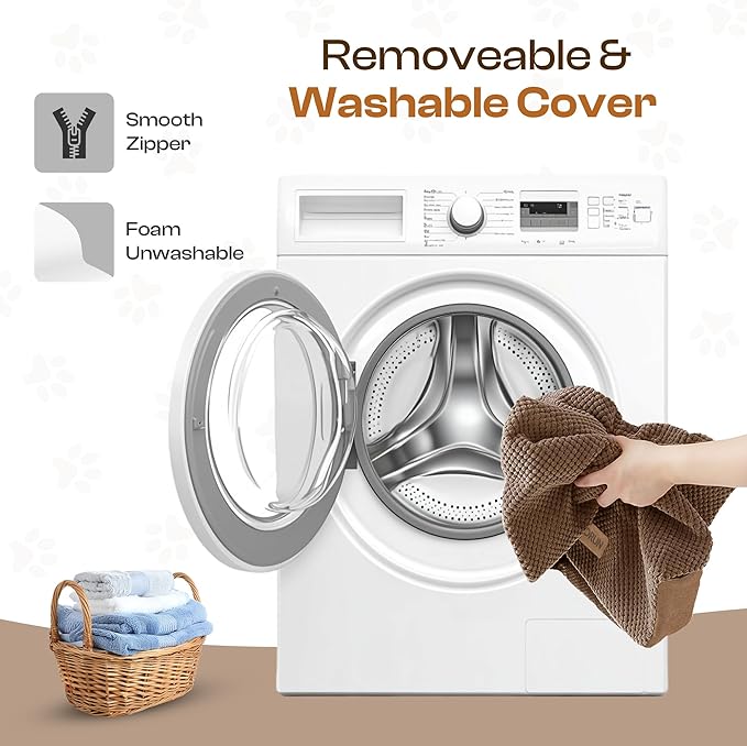 - Fully Washable Cover – Soft upholstery zip cover slips off for machine wash; breathable velvet tread grips paws even when wet.