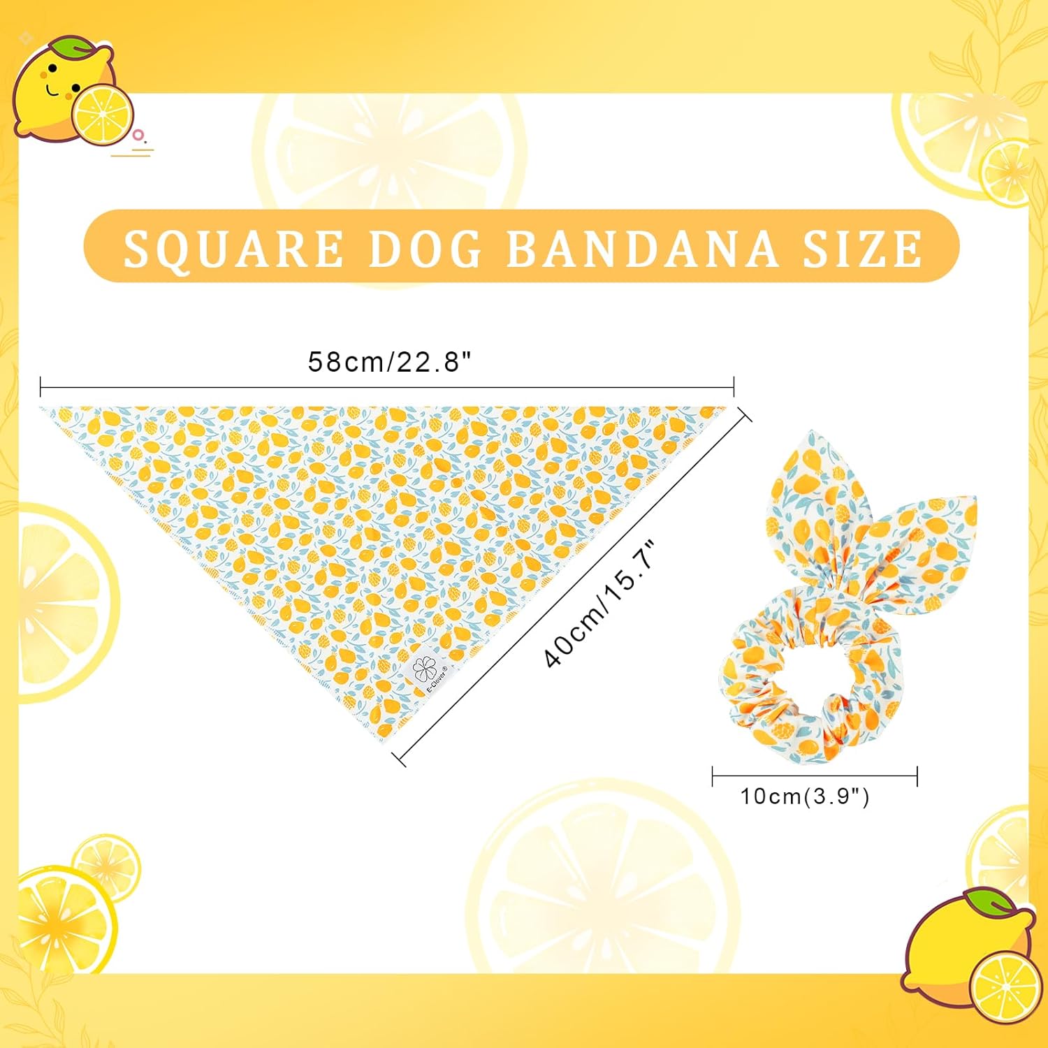 E-Clover Yellow Floral Dog Bandanas & Matching Scrunchie Set Summer Cute Dog Scarf Bibs Pet Bandana with Bow Tie for Small Dogs Puppy Owner Mom Spring