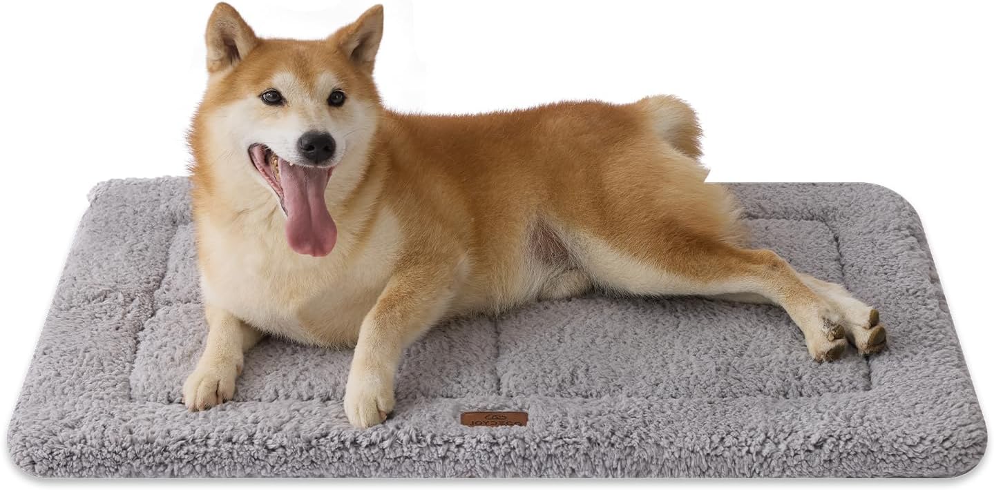 Joydeco Low Profile Dog Crate Mat Reversible Bed Pad, Washable Dog Pad Mat with Ultra Soft Fleece, Compact Design Kennel Beds Mats for Large Medium Small Pets, 36" x 27" Gray