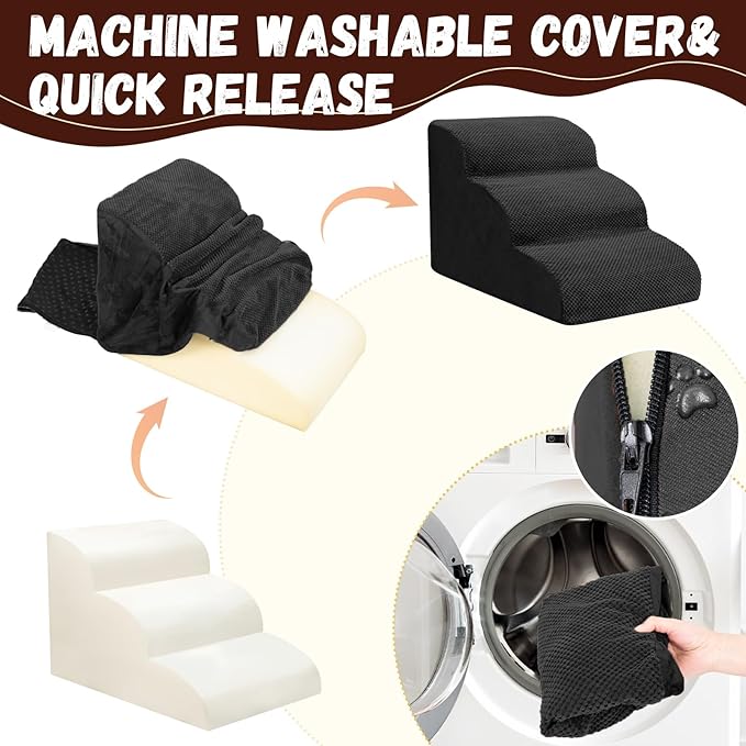 - Double Sided Anti Slip: The dog steps cover is made of corduroy with greater friction than other fabrics, which provides extra grip while in use, the bottom features nonslip rubber dots, preventing pets from sliding while climbing, providing pets with double safety protection