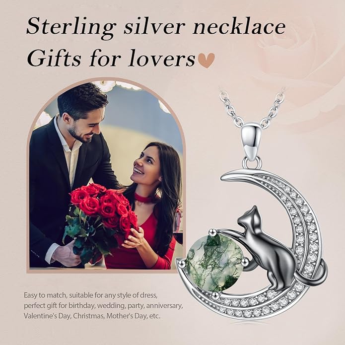 - Sterling Silver Material: The genuine moss agate showcases delicate natural inclusions, resembling a miniature forest. Paired with 4g of premium 925 sterling silver, the cat pendant is no-nickel, no-lead, and hypoallergenic, ensuring comfort even for sensitive skin.
