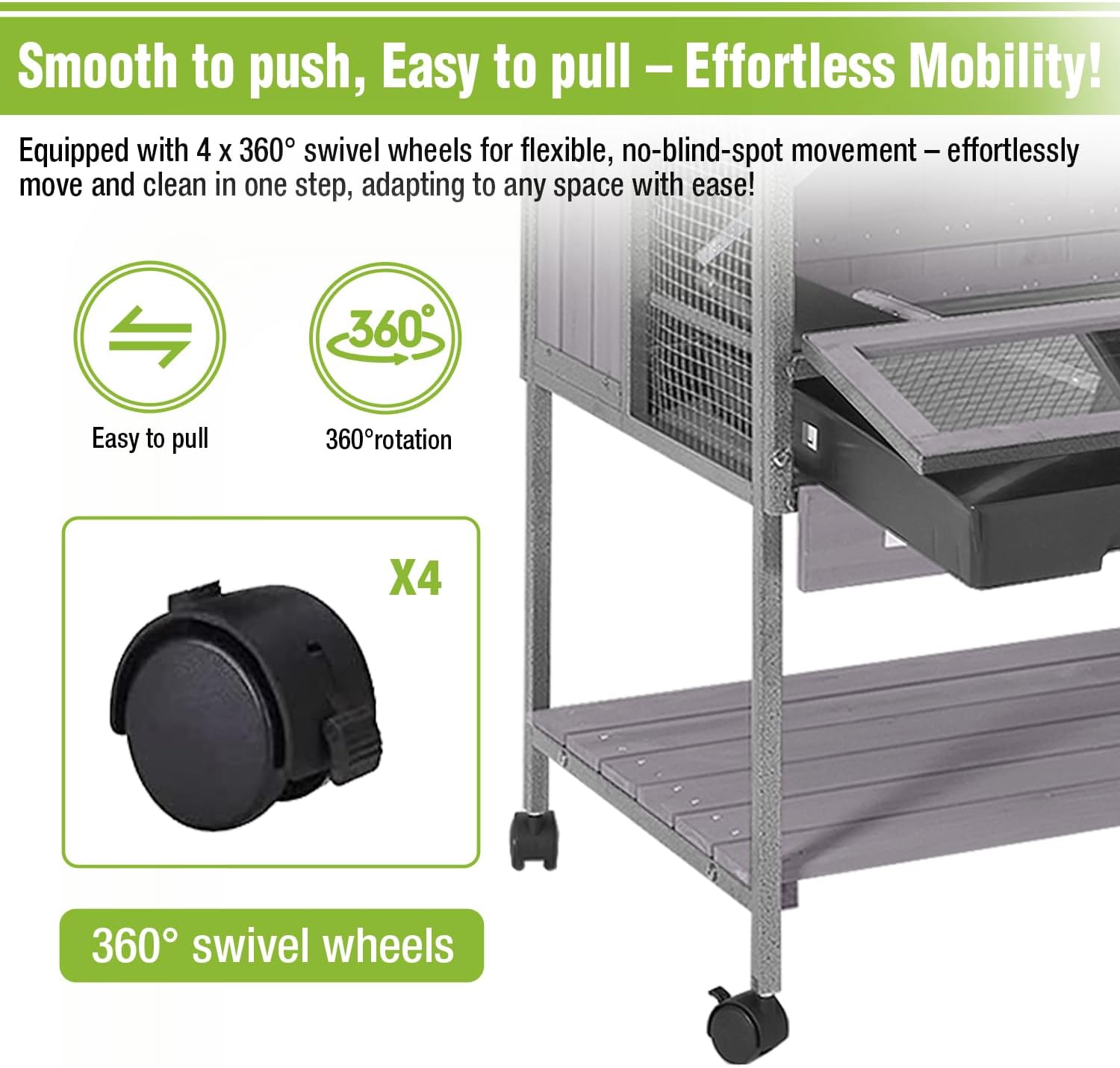 - ππππππ πππ ππππ ππππ πππππππ ππππππππ - The guinea pig cage includes 4 smooth-roll wheels and a storage shelf for supplies. Relocate your guinea pig habitat effortlessly between rooms/balconies while keeping feed/bedding organized β ideal for multi-pet households