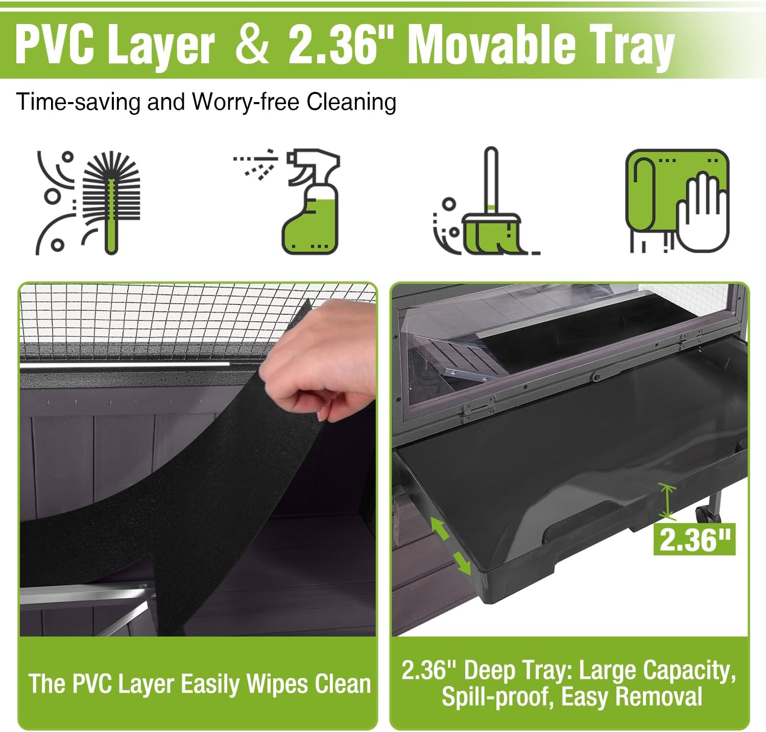- ππππ ππππ-πππππ ππππ π ππ ππππππ ππππ - Our guinea pig cage uses a 2.36" deep removable tray to contain wood shavings and waste. it simplifies cleaning and ensures a clean, odor-free environment for your pets. Perfect for holding wood beds, promoting a large hamster cage experience with superior comfort