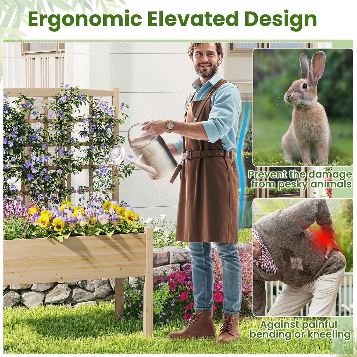 Giantex Raised Garden Bed with Trellis, Wooden Elevated Planter Box with Legs, Drainage Holes for Climbing Plants Vines Vegetables Flowers Herbs, Outdoor Horticulture Planter for Patio Yard (Natural)