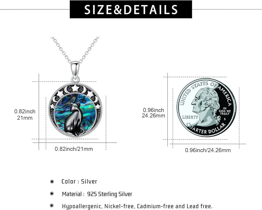 - Black Cat Pendant Material: Black cat necklace for women made of 925 sterling silver, ensuring its glossiness and durability, hypoallergenic and safe for sensitive skin. The intricate detailing and sleek finish make them a standout accessory for any occasion