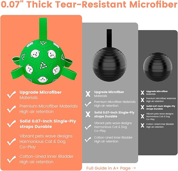 - 💪Built to Last (But Not for Chewing!): Made from thick 0.07" premium Microfiber and reinforced stitching, this ball is tougher than it looks. It holds its shape, stays bouncy, and resists damage—unless your pup turns into a porcupine. Not a chew toy, but perfect for active play. 𝐌𝐚𝐱 𝐀𝐢𝐫 = 𝐌𝐚𝐱 𝐃𝐮𝐫𝐚𝐛𝐢𝐥𝐢𝐭𝐲. 𝐊𝐞𝐞𝐩 𝐟𝐮𝐥𝐥𝐲 𝐢𝐧𝐟𝐥𝐚𝐭𝐞𝐝!