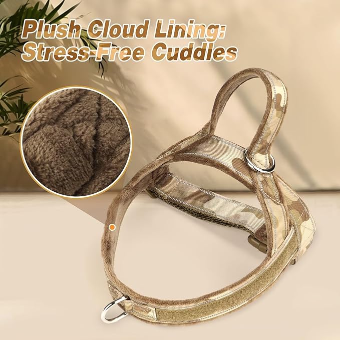 Forestpaw No Pull Dog Harness - Soft Flannel Padded Tactical Dog Vest Harness with Quick Release Buckle, Adjustable Reflective Pet Harness for Large Dogs Walking Training,Brown Camouflage L