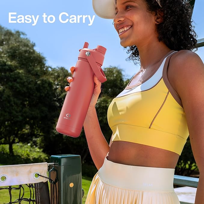 - Sip or Chug, Your Choice: Straw lid for sipping on the go and twist cap for deep hydration, all in one ENCOOL water bottle