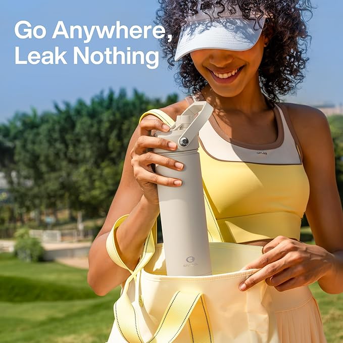 - Sip or Chug, Your Choice: Straw lid for sipping on the go and twist cap for deep hydration, all in one ENCOOL water bottle