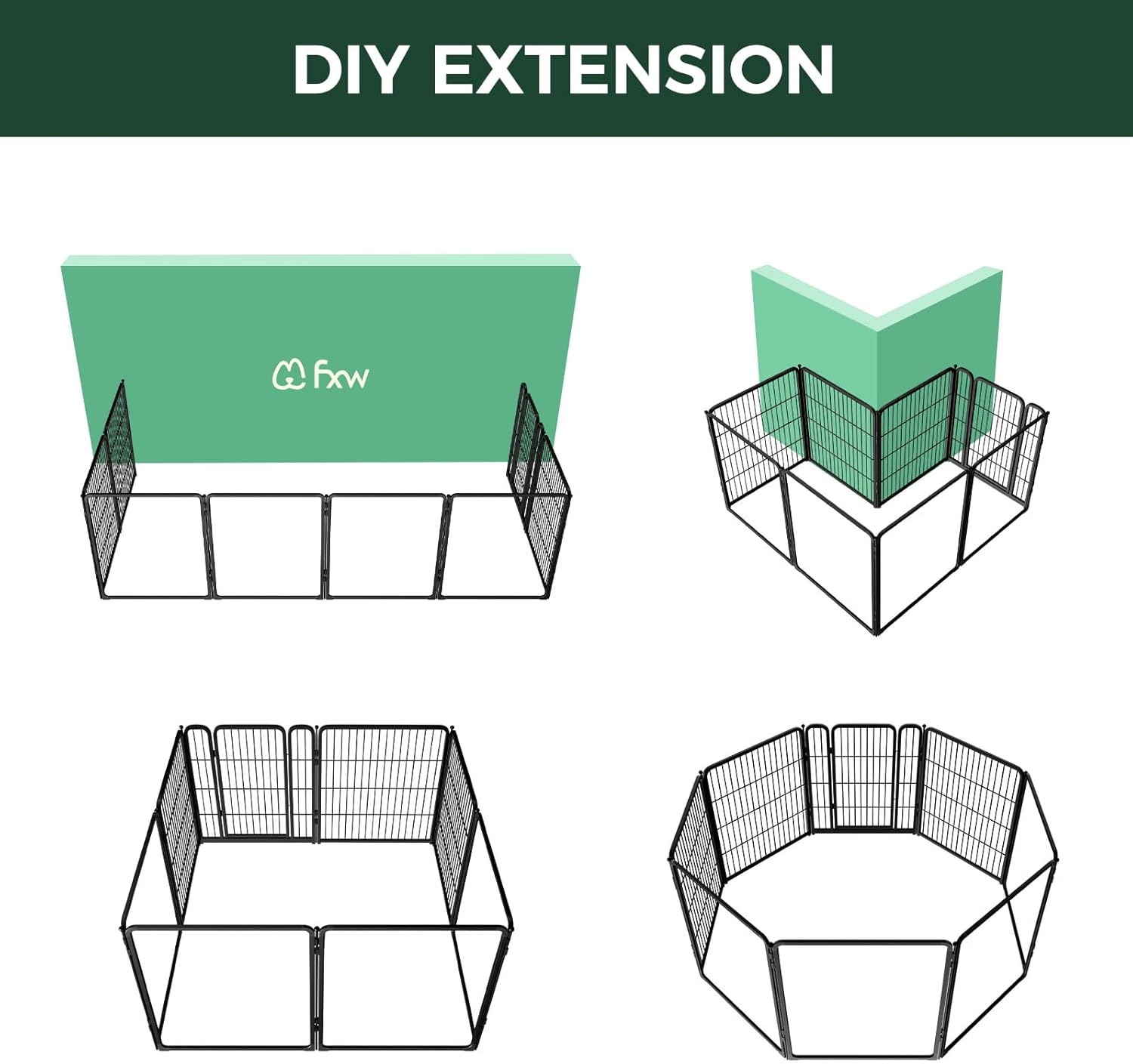 FXW Homeplus Unleashed Indoor Dog Playpen - Stress-Free and Safe Play, Heavy Duty 32 Inch 4 Acrylic Panels + 4 Wire Panels Dog Pen for Small and Medium Dogs, Black│Patented