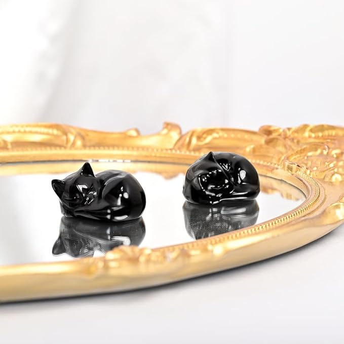 - Gemstone Cat Decor: Heavy but small carved, this kitten is super cute and it is well carved and the pose is realistic and delight any black cat lover; you can put it in windowsill in the sun for cleansing and bringing in positive energy