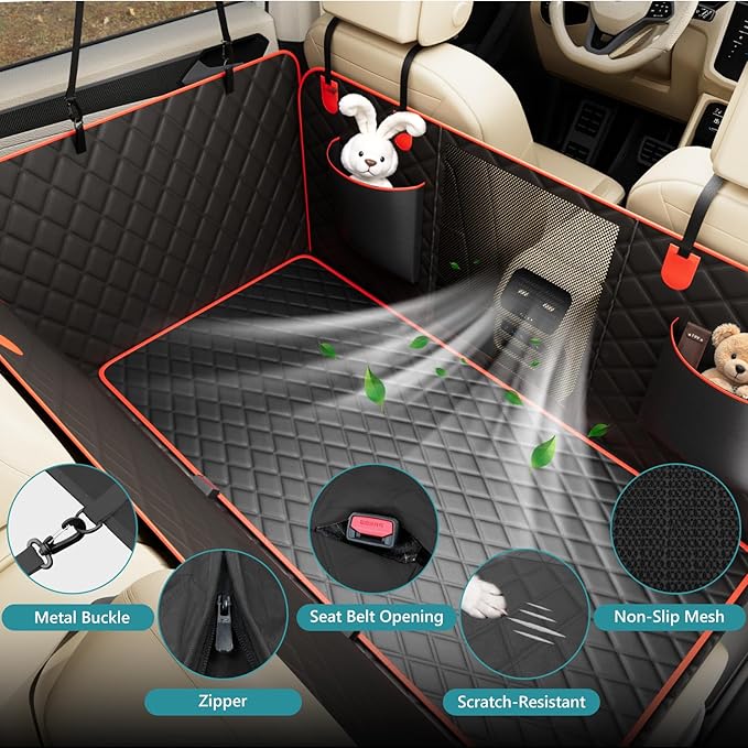- Transforms Backseat into a Spacious Dog Bed: This back seat pet cover for dogs doubles as a dog car seat cover for back seat, providing a secure and comfortable space for your pet. Holds up to 400 lbs, giving your furry friend plenty of room to relax on every ride