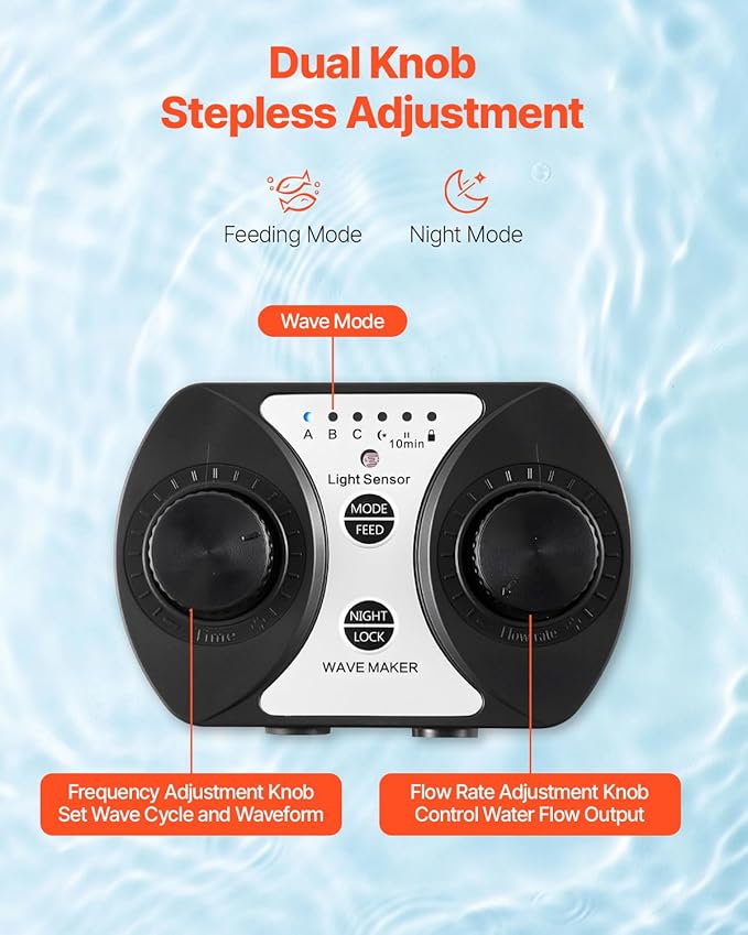 - Multi-Functional Controller: Take full control with our multi-functional controller! Adjust wave frequency and water flow rate with dual knobs. Enjoy additional features like feed mode, night mode, and key lock for added convenience