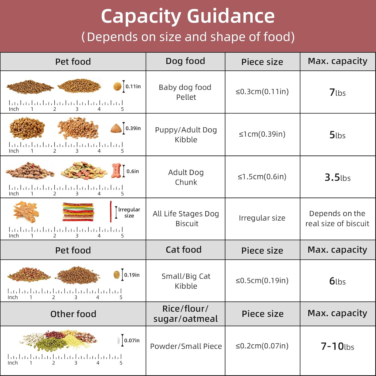 - MULTI-PURPOSE STORAGE : Our pet food container is suitable for storing dog food、cat food、bird seed、fish food、rice、 dry food、cereals、oats、flour and other large and small grains, as well as washing powder used at home. It is also a good choice.