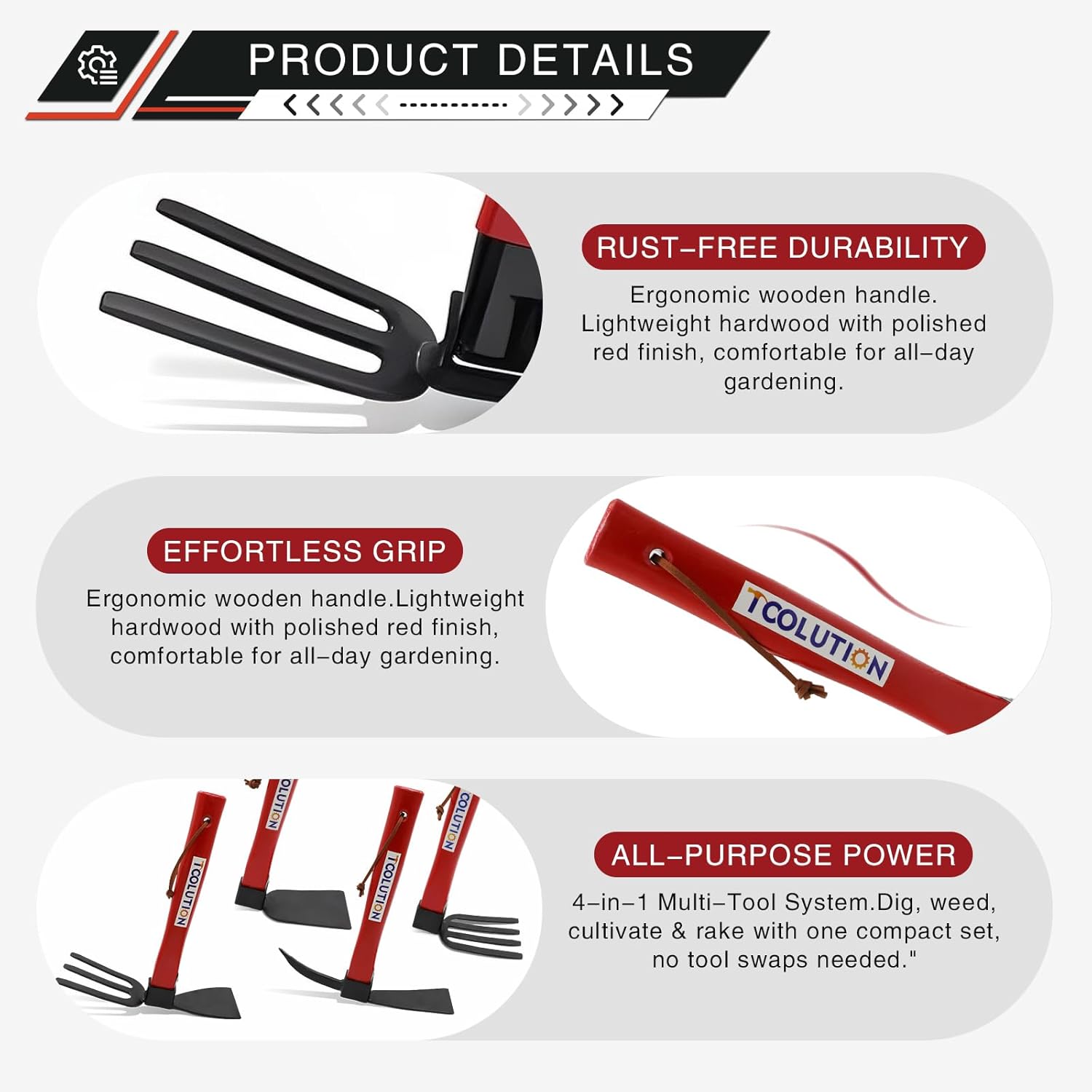 - Ergonomic Textured-Grip Handles: Wooden handles with textured coating enhance control during light gardening tasks. Minimizes slipping and reduces palm fatigue for sessions under 1 hour.