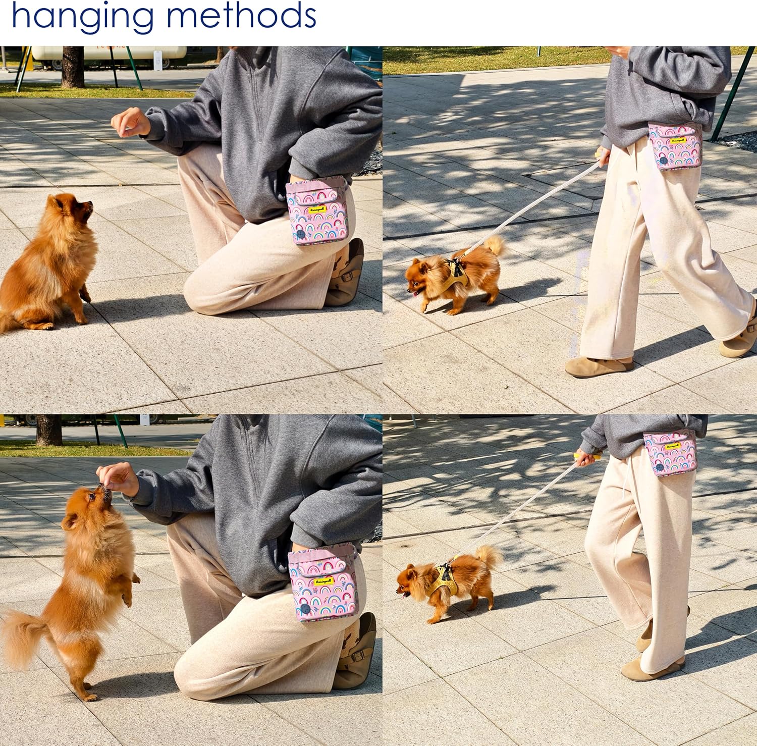 Dog Treat Pouch for Pet Walking and Training with Clicker 2 Cup Silicone Bag Small Fanny Pack Holder for Puppy Snack Dispenser Kit for Leash and Outdoor Use (Rainbow)