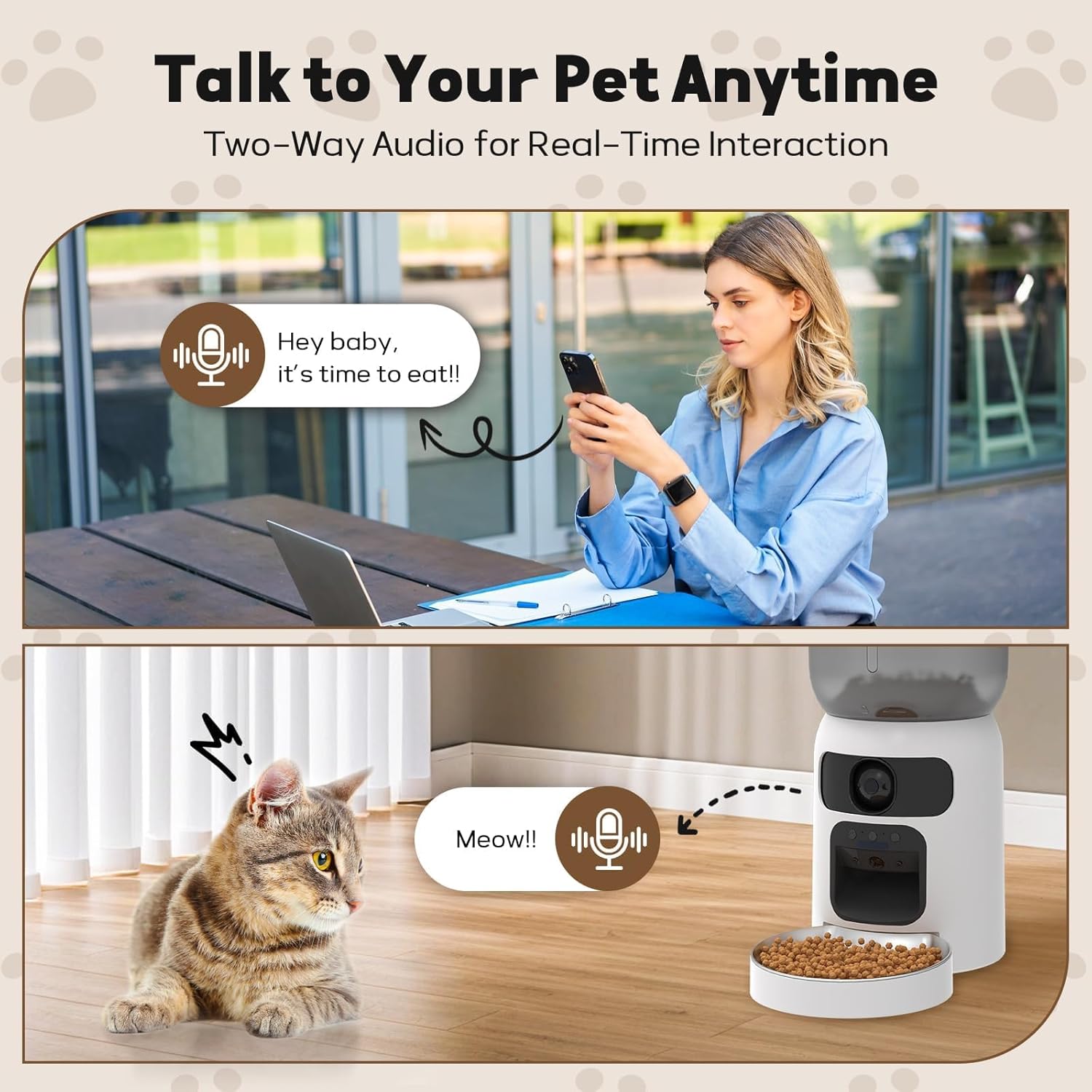- 【Two-Way Audio, Cat Toy & Voice Feeding】Talk to your pet, engage them with a built-in toy, and auto-play your custom voice message during feeding. Real-time interaction helps reduce anxiety and adds fun to their mealtime — even when you're not home.