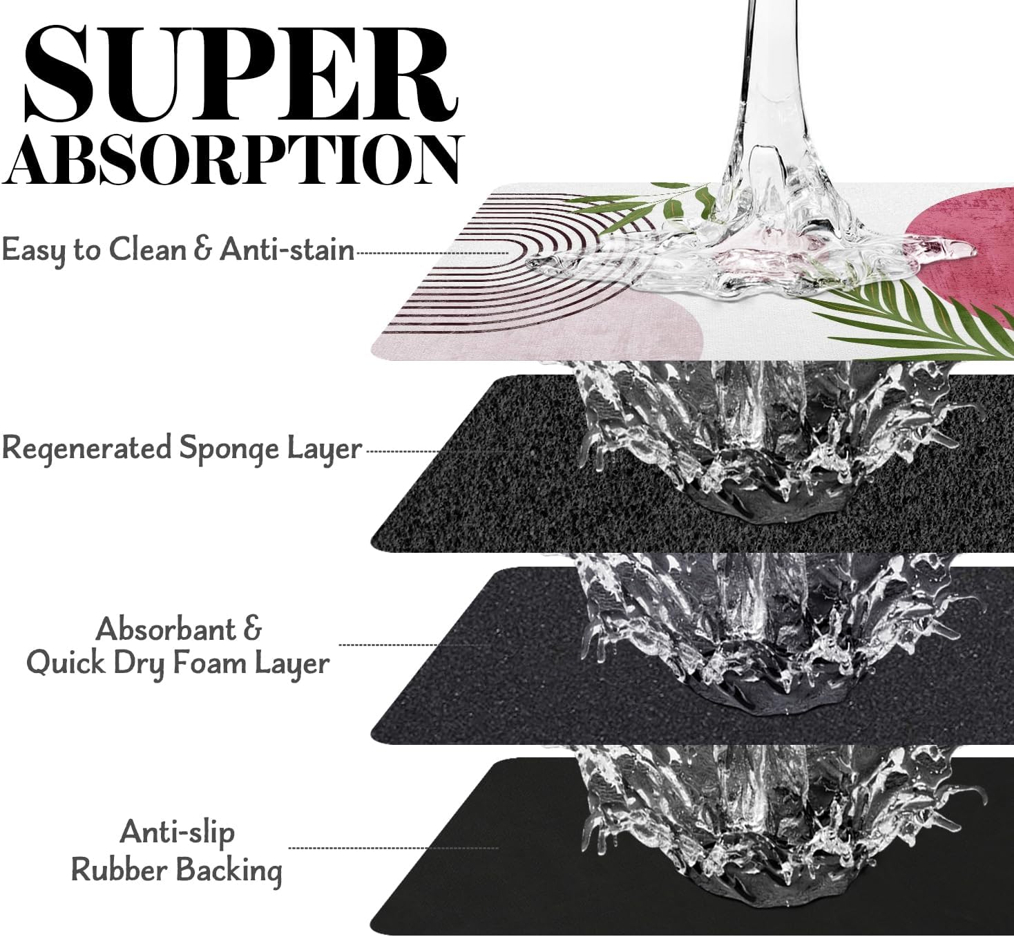 - Super Absorption: The dog mat for water bowl can absorb spilled water without leaving traces and dry quick, avoid wetting pet paws even for messy drinkers. And it does not attract pet hair like traditional silicone dog bowl mat.