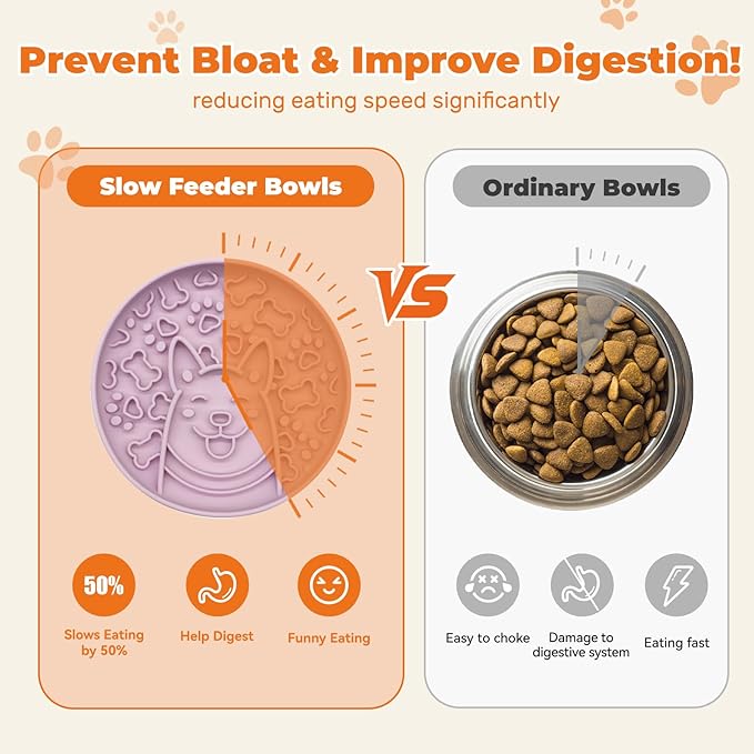 Dog Slow Feeder Bowl, Silicone Dog Bowl, Non-Slip Suction Cups Design,Boring and Anxiety Reducer.(Light Purple)