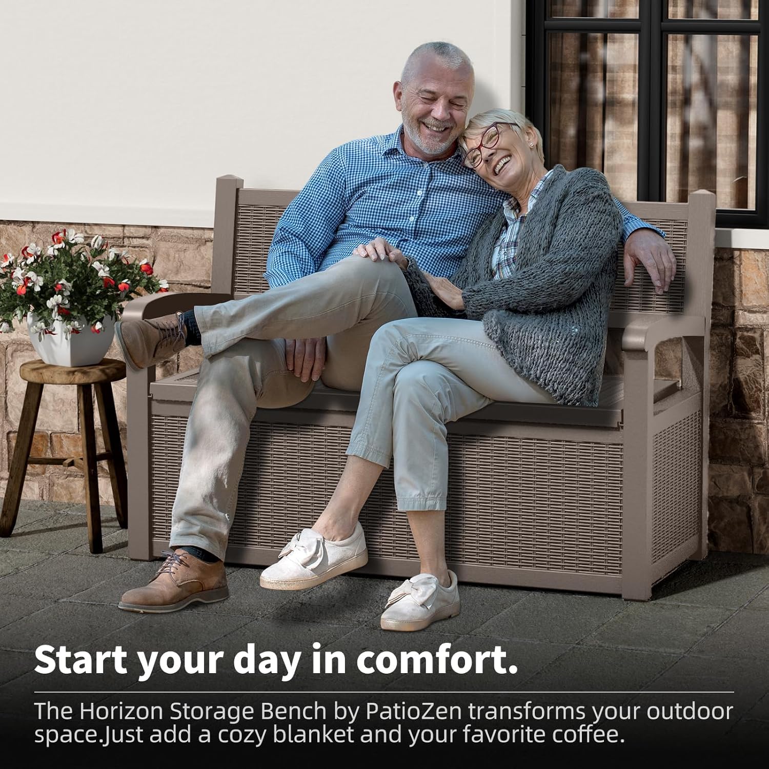 - WATERPROOF AND FADE PROOF : Crafted from high-quality, eco-friendly resin, the EasyUp storage bench is designed to be waterproof and UV-resistant, ensuring excellent durability. It withstands harsh sun and rain, maintaining its original appearance and strength in any season, making your outdoor life easier and worry-free.