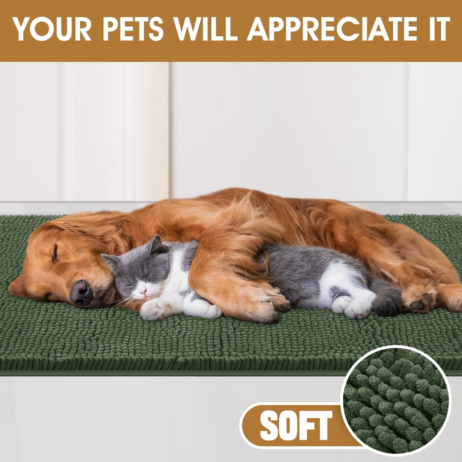 Extra Large Dog Door Mats for Muddy Paws, Chenille Absorbent Dog Mats, Non Slip Heavy Mud Mat for Dogs, Soft Pet Mat for Entryway, Mud Paws, Inside Floor,60" x 36", Olive