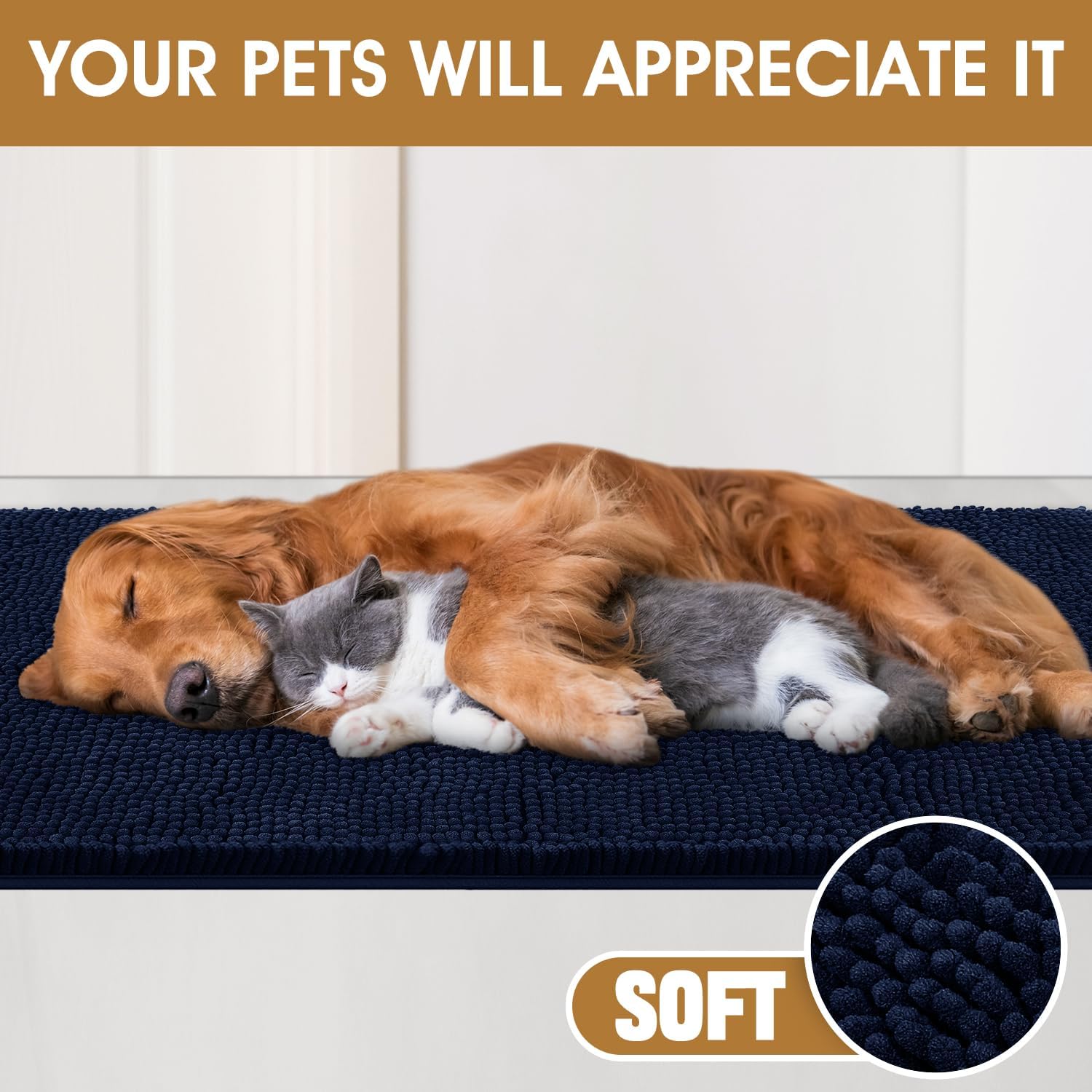 Extra Large Dog Door Mats for Muddy Paws, Chenille Absorbent Dog Mats, Non Slip Heavy Mud Mat for Dogs, Soft Pet Mat for Entryway, Mud Paws, Inside Floor,60" x 36", Navy Blue